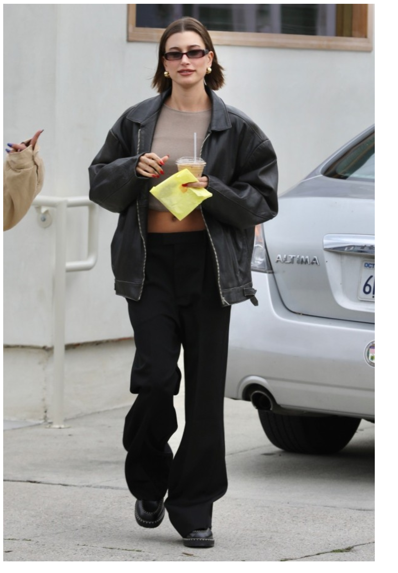クロップドトップス×スラックスにレザージャケットを羽織って足元はローファーを合わせた私服コーデ😎❇️
