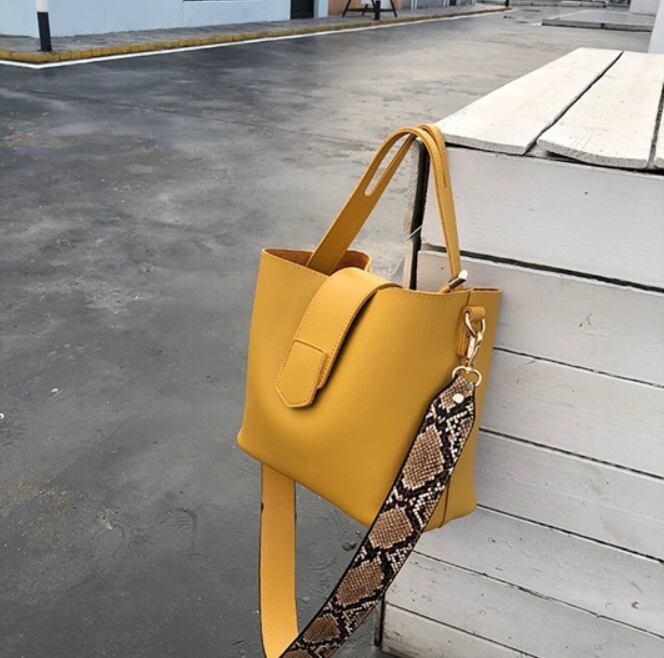 ショルダーの紐はパイソン柄でコーディネートのポイントにもgood♪
