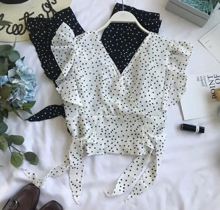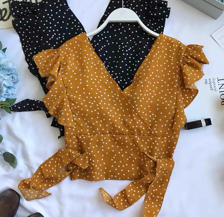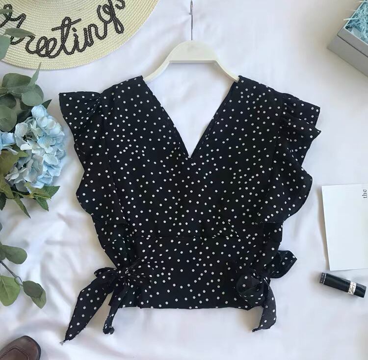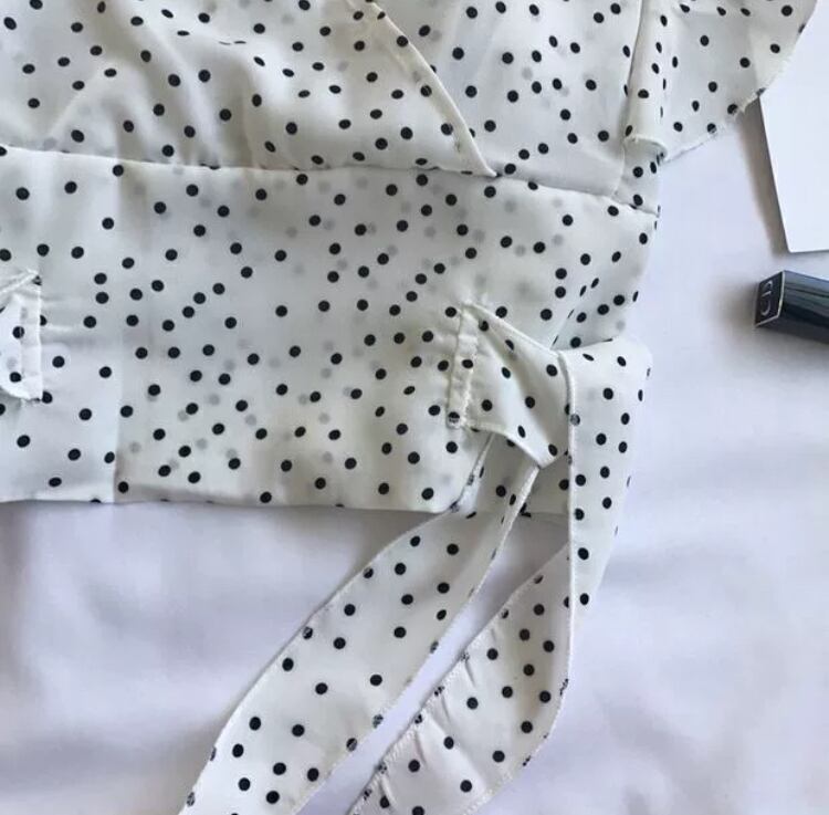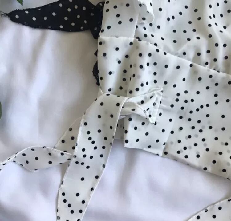 細かいドットが可愛い♪ ウエストサイドリボン付きのトップスです。
