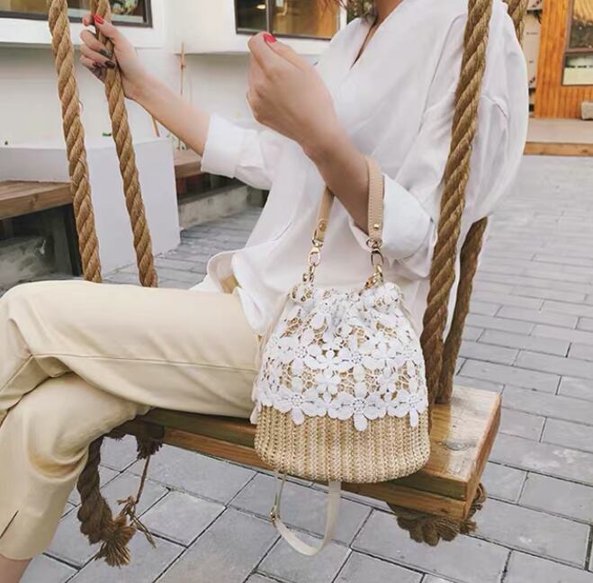 レースがカゴについたフェミニンな可愛らしいバッグです。