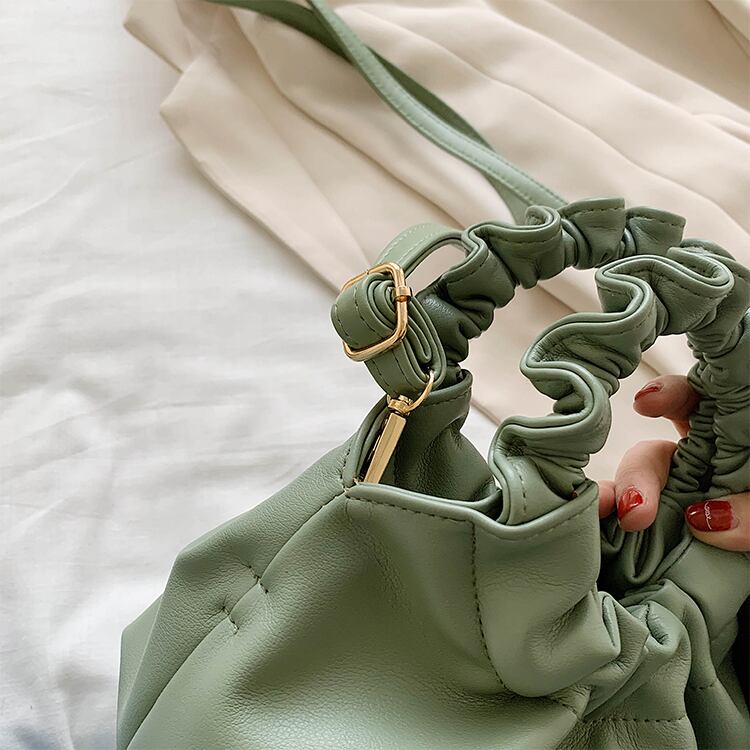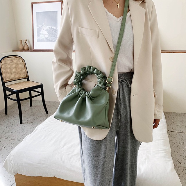 大人カラーなくしゅくしゅバック。どんな洋服でも合わせやすいショルダーバックです。