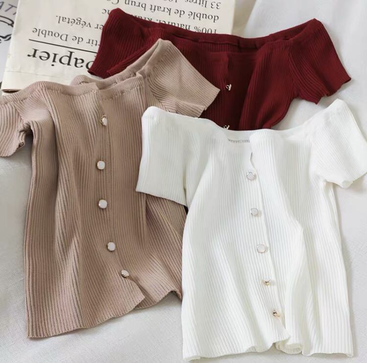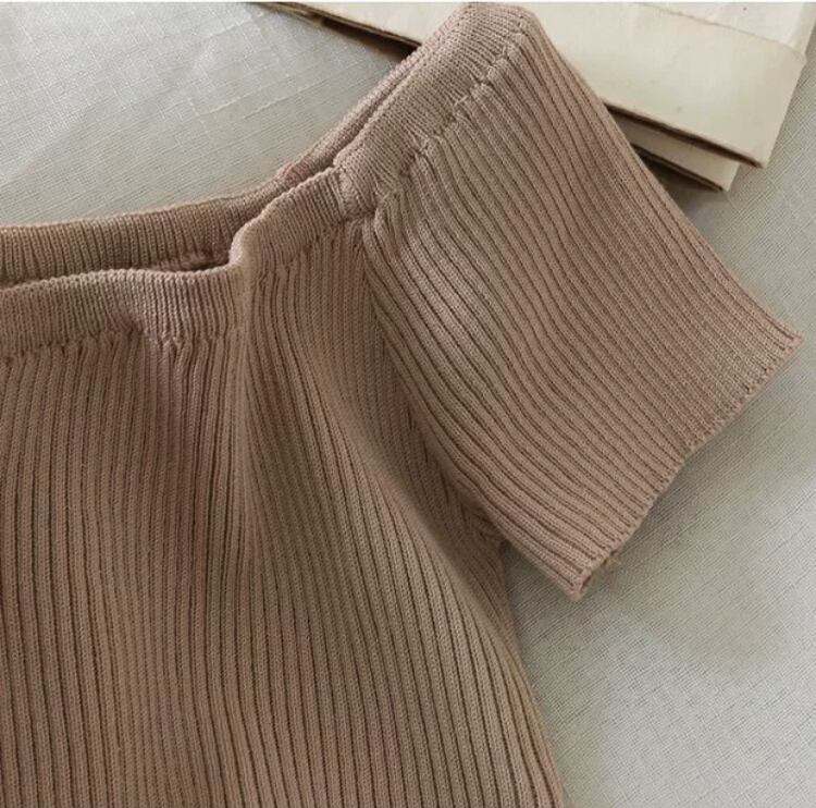 オフショルダーサマーニットトップス6色